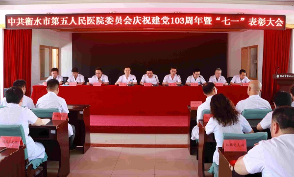 医心跟党走,奋进新征程。6月27日,我院组织召开庆祝建党103周年暨“七一”表彰大会。桃城区卫健局党组成员、副局长戴英国出席会议并讲话,医院领导班子成员、各支部书记、中层干部以及党员代表参加会议,党委书记韩非主持会议。