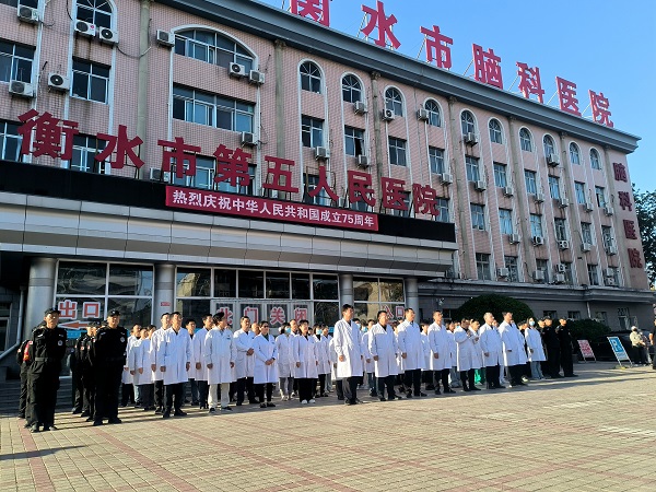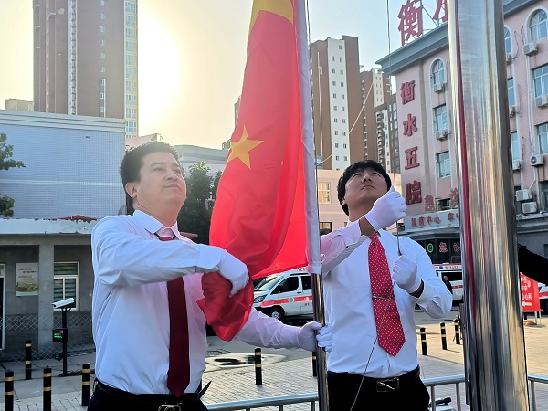 为庆祝中华人民共和国成立75周年,10月1日,衡水市第五人民医院举行升旗仪式。医院党政班子成员及行政职能部门代表、临床医技科室代表150余人参加。