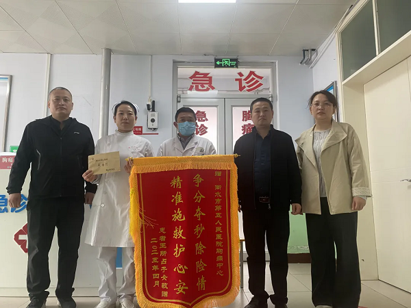 “大夫!谢谢你们给了我爸第二次生命!”4月18日上午,衡水市第五人民医院(以下简称衡水五院)大厅里,70岁急性心梗康复患者王福海(化名)的儿子攥着两面红绸锦旗,声音因激动而发颤。女儿王女士怀抱鲜花跟在身后,眼眶泛红:“要不是你们把我爸从鬼门关硬拽回来,我们这个家就塌了!这份救命之恩,我们做儿女的永生难忘!”